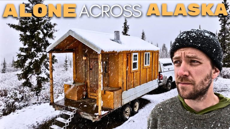 Alleine über fast menschenleere Highways von Alaska, das zeigt ein Video von „Alaska Cabin Adventure“. Er ist unterwegs mit seinem Pickup und einem selbst gebauten Wohnwagen. Und natürlich seinem Hund…